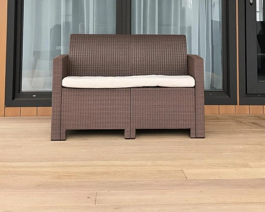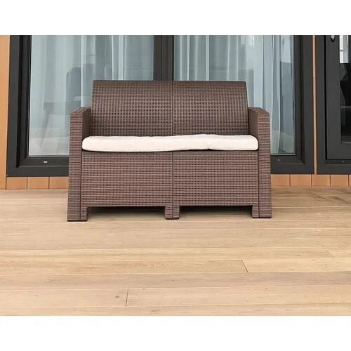 Двуместный диван LANA Представляем вашему вниманию двуместный диван LANA, который станет изысканным акцентом вашего уюта на свежем воздухе. С размерами 120,5х66х76 см, он идеально впишется в любое пространство на веранде, террасе или в саду. Материалы и дизайн: Диван выполнен из окрашенного в массе полипропилена с повышенной прочностью, что обеспечивает ему долговечность и устойчивость к неблагоприятным погодным условиям. Этот материал не только демонстрирует высокие эксплуатационные характеристики, но и легко очищается от загрязнений. Цвет: Стильный коричневый цвет добавляет современности и элегантности в интерьер вашего сада. Он гармонично сочетается с различными цветами и текстурами окружающего ландшафта. Комфорт и функциональность: Диван LANA предназначен для комфортного отдыха вдвоем. Его лаконичный и продуманный дизайн позволит вам наслаждаться общением с близкими, а также прекрасно расслабляться с любимой книгой или напитком в руках. Уход: Легкий уход за изделием позволяет вам не беспокоиться о его сос