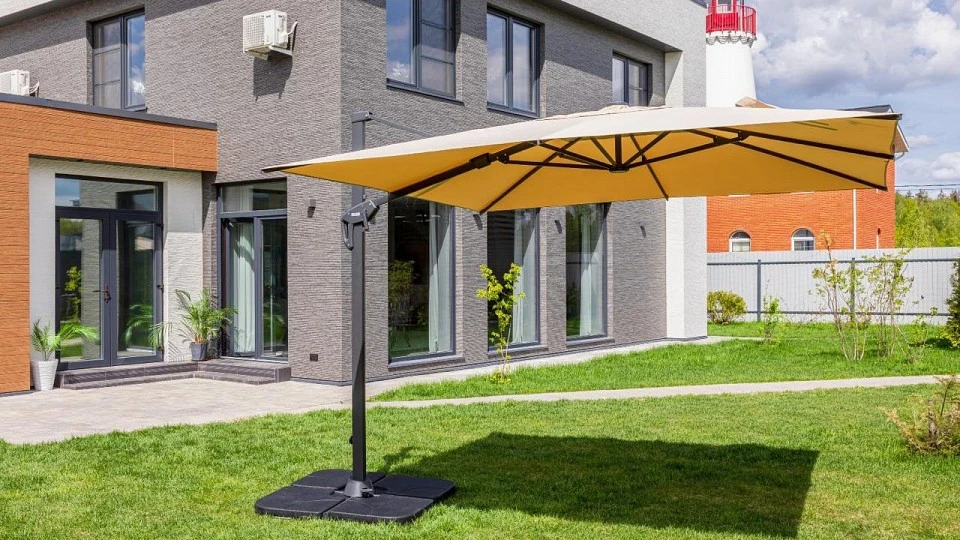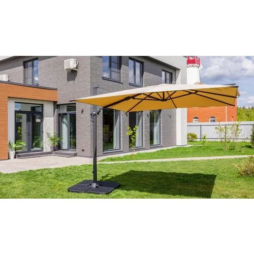 Квадратный уличный зонт SKY в бежевом цвете. Этот зонт имеет алюминиевую ногу и основание из плит, выполненных из высококачественного пластика, заполненного изнутри бетоном, что обеспечивает надежную устойчивость даже в ветреную погоду. Уличный зонт SKY оснащен механизмом поворота на 360 градусов, что позволяет легко регулировать его положение в зависимости от солнечного света или направления ветра. Ткань зонта изготовлена из прочного полиэстера 200 г/м2, который обладает высокой степенью защиты от ультрафиолета и долговечностью. Этот стильный и функциональный уличный зонт SKY станет отличным дополнением к вашему саду или террасе, обеспечивая комфорт и защиту от солнца в течение всего летнего сезона. Приобретите круглый уличный зонт SKY уже сегодня и наслаждайтесь отдыхом на свежем воздухе в любое время дня!