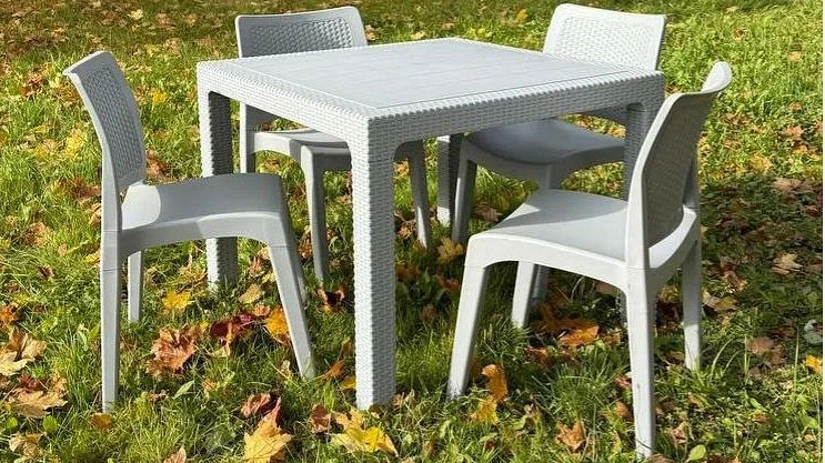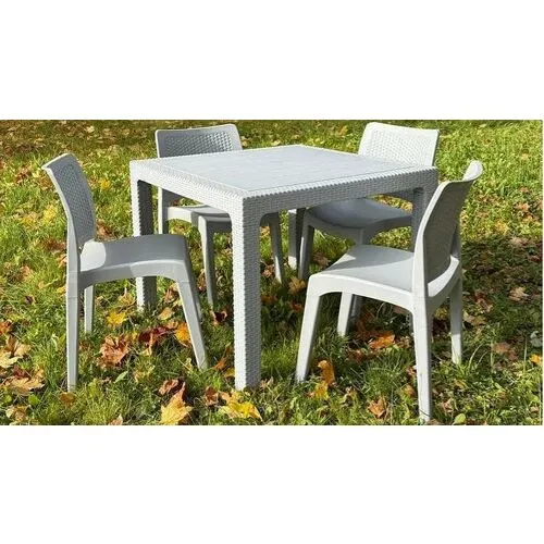 Стильный и практичный комплект мебели JULY MINI S из высокопрочного пластика в светло-сером цвете — идеально подчеркнет Ваш уют и добавит современного шика вашему пространству! Этот набор включает просторный стол размером 95х95х75 см и четыре комфортабельных стула 49х52х84 см, созданных из высокопрочного пластика, отличающегося высокой износостойкостью и легкостью в уходе. Благодаря своему современному дизайну и яркому цвету, комплект идеально впишется в любую обстановку — от уютной террасы до стильной Cafe-зоны. Этот комплект мебели — превосходный выбор для тех, кто ценит качество, стиль и комфорт!